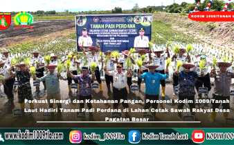 Perkuat Sinergi dan Ketahanan Pangan, Personel Kodim 1009/Tanah Laut Hadiri Tanam Padi Perdana di Lahan Cetak Sawah Rakyat Desa Pagatan Besar