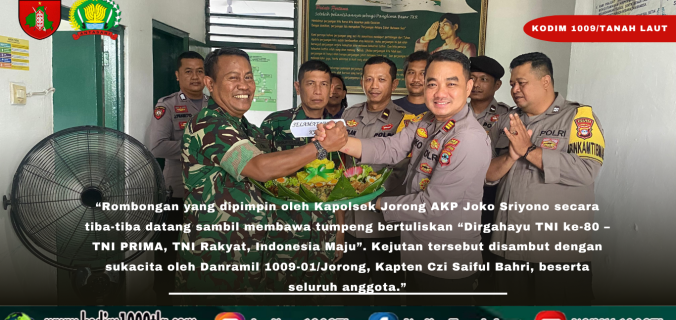 Tanah Laut — Suasana penuh kehangatan dan kebersamaan tampak di Makoramil 1009-01/Jorong pada Senin (6/10/2025) pagi. Dalam rangka memperingati Hari Ulang Tahun ke-80 Tentara Nasional Indonesia (TNI), jajaran Polsek Jorong… [Lanjutkan Membaca]
