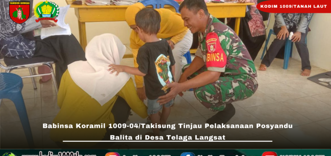 Tanah Laut – Wujud kepedulian terhadap kesehatan masyarakat di wilayah binaan terus ditunjukkan oleh Babinsa jajaran Kodim 1009/Tamah Laut. Kali ini, Kopka Abu Hartoyo selaku Babinsa Koramil 1009-04/Takisung melaksanakan peninjauan kegiatan Posyandu Balita yang digelar di Desa Telaga Langsat, Kecamatan Takisung, Kabupaten Tanah Laut, Senin (02/03/2026).