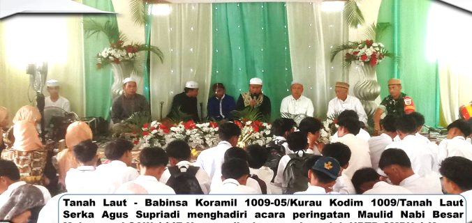 Tanah Laut – Babinsa Koramil 1009-05/Kurau Kodim 1009/Tanah Laut Serka Agus Supriadi menghadiri acara peringatan Maulid Nabi Besar Muhammad SAW 1447 H, yang diselenggarakan oleh UPTD SMPN 1 Kurau, Kecamatan Kurau, Kabupaten Tanah Laut, Senin (08/09/2025).