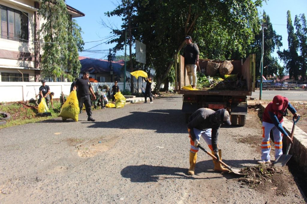 Kegiatan ini difokuskan pada pembersihan sampah yang menyumbat saluran air, pengangkatan sampah plastik, serta pembersihan rerumputan di lingkungan pasar agar pasar terlihat lebih bersih dan nyaman bagi pengunjung.