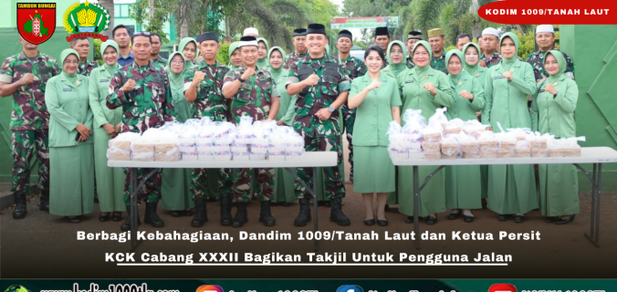 Kegiatan yang dilaksanakan di depan Makodim 1009/Tanah Laut tersebut diikuti oleh para prajurit serta anggota Persit KCK Cabang XXXII. Ratusan paket takjil dibagikan kepada pengendara roda dua, roda empat, maupun masyarakat yang melintas menjelang waktu berbuka puasa.