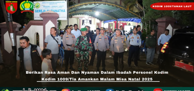 Selama pelaksanaan malam Misa Natal 2025, situasi di seluruh gereja yang ada di wilayah Kodim 1009/Tanah Laut terpantau aman, tertib, dan kondusif. Kegiatan ibadah berlangsung dengan lancar tanpa adanya gangguan berarti.