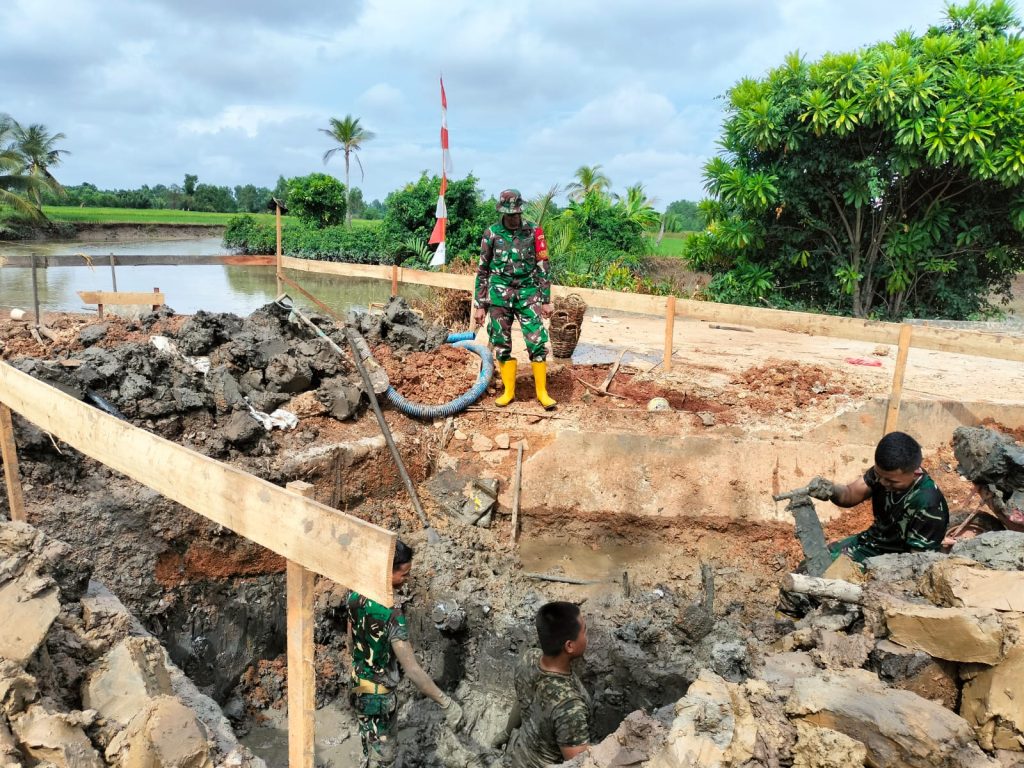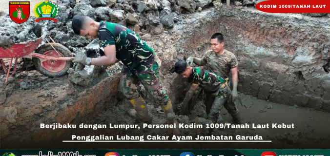 Tanah Laut – Meski harus berjibaku dengan kondisi medan berlumpur, personel Kodim 1009/Tanah Laut tetap menunjukkan semangat tinggi dalam mempercepat pembangunan Jembatan Garuda yang berlokasi di Desa Handil Labuan Amas, Kecamatan Bumi Makmur, Kabupaten Tanah Laut, Senin (13/04/2026).