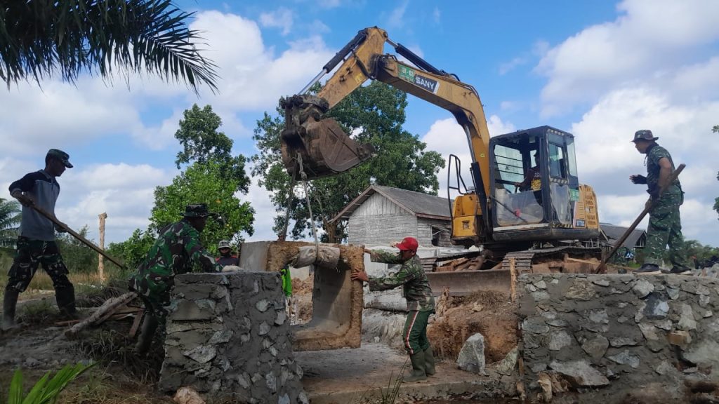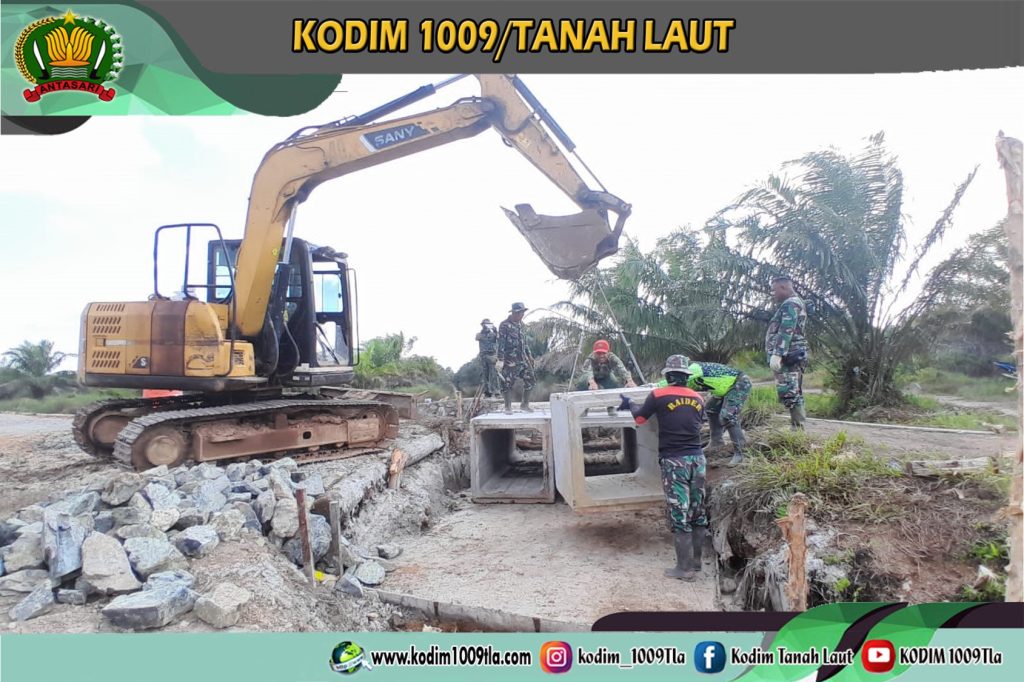 Tanah Laut – Personil yang tergabung dalam satuan tugas (Satgas) TMMD ke 117 Kodim 1009/Tanah Laut pada sasaran siring dan jembatan kembali melanjutkan pengerjaan pemasangan Box Culvert sebagai media penghubung jalan, setelah beberapa hari yang lalu dilaksanakan pengecoran pada bagian dasar jembatan, Jum’at (28/07/2023).