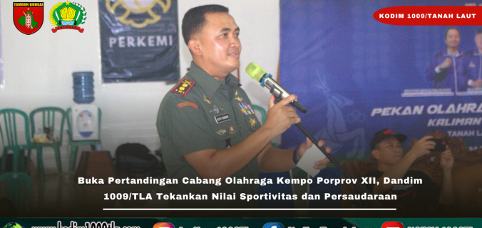 Tanah Laut – Komandan Distrik Militer (Dandim) 1009/Tanah Laut Letkol Inf Adhy Irawan, S.I.P., M.H.I., secara resmi membuka pertandingan cabang olahraga (Cabor) Kempo pada Pekan Olahraga Provinsi (Porprov) XII Kalimantan Selatan Tahun 2025, yang digelar di Gedung Paraduta Kodim 1009/TLA, Senin (03/11/2025).