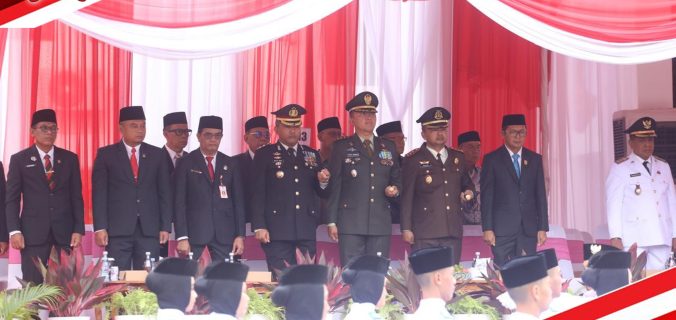 Tanah Laut – Bertempat di Halaman Kantor Bupati Tanah Laut, Minggu (17/08/2025) pagi, Komandan Distrik Militer (Dandim) 1009/Tanah Laut Letkol Inf Adhy Irawan, S.I.P., M.H.I., didampingi Ketua Persit Kartika Chandra Kirana Cab. XXXII Dim 1009 Koorcab Rem 101 Ny. Dina Adhy Irawan menghadiri upacara puncak peringatan hari ulang tahun (HUT) kemerdekaan RI ke-80 Tahun 2025 tingkat Kab. Tanah Laut.