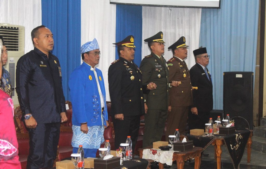 Pelaihari – Komandan Distrik Militer (Dandim) 1009/Tanah Laut Letkol Inf Adhy Irawan, S.I.P., M.H.I., didampingi Ketua Persit KCK Cabang XXXII Dim 1009 Koorcab Rem 101 PD XXII/Tambun Bungai Ny. Dina Adhy Irawan menghadiri Rapat Paripurna DPRD Kabupaten Tanah Laut dalam rangka memperingati Hari Jadi ke-60 Kabupaten Tanah Laut Tahun 2025, Selasa (02/12/2025).