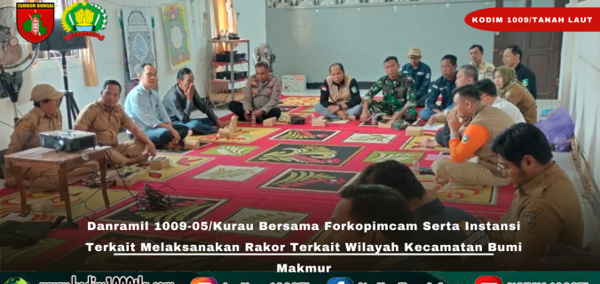 Rakor tersebut dihadiri oleh Danramil 1009-05/Kurau, Camat Kurau, Kapolsek Bumi Makmur, perwakilan Dinas PUPR Tanah Laut, perwakilan BPBD, para kepala desa se-Kecamatan Bumi Makmur, serta unsur terkait lainnya. Kegiatan ini bertujuan untuk menyamakan persepsi dan memperkuat sinergi lintas sektor dalam menghadapi dampak banjir akibat tingginya curah hujan.