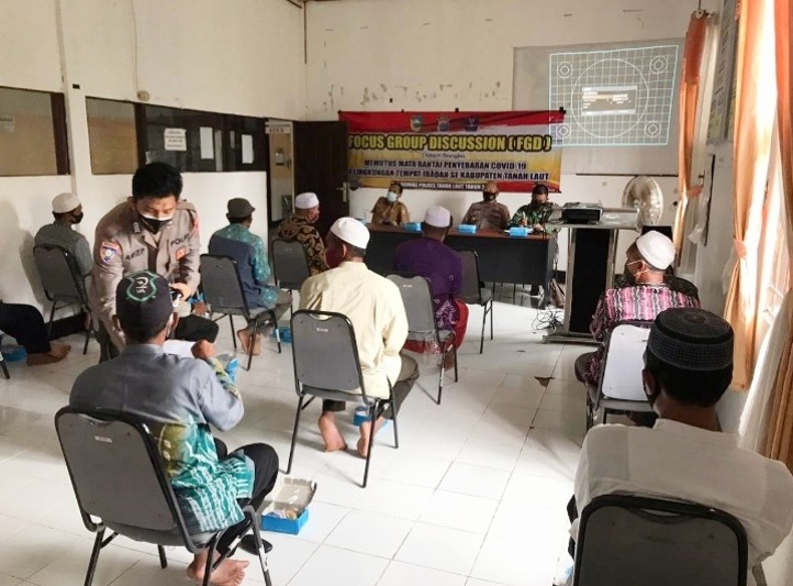 Bumi Makmur – Danpos Ramil 1009-05 Kurau Pelda Erhami hadiri Focus Group Discussion (FGD) dengan pengurus Mesjid dalam rangka memutus mata rantai penyebaran Covid 19 di tempat ibadah di Kantor Kecamatan Bumi Makmur Kabupaten Tanah Laut, Senin (01/11/20).