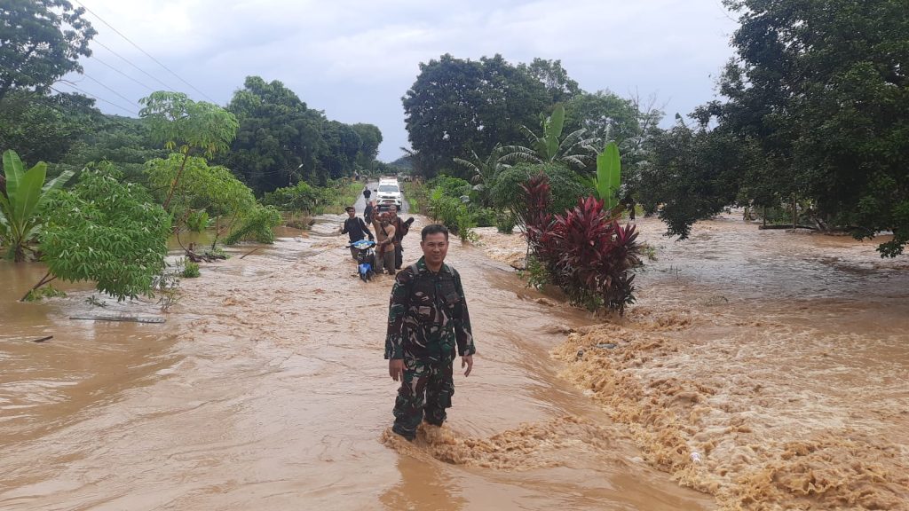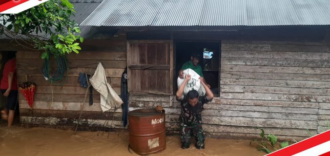 “Banjir ini bersifat dadakan yang mengakibatkan jalan rusak dan 8 buah rumah terendam sedalam kurang lebih 1 meter di Rt 05 dan di RT 03 sebanyak 4 rumah terendam air setinggi 1 meter, banjir ini merupakan kiriman dari hulu sungai karena intensitas hujan yg tinggi,” ungkap Serka Tri Budi.