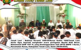 Tanah Laut – Babinsa Koramil 1009-05/Kurau Kodim 1009/Tanah Laut Serka Agus Supriadi menghadiri acara peringatan Maulid Nabi Besar Muhammad SAW 1447 H, yang diselenggarakan oleh UPTD SMPN 1 Kurau, Kecamatan… [Lanjutkan Membaca]