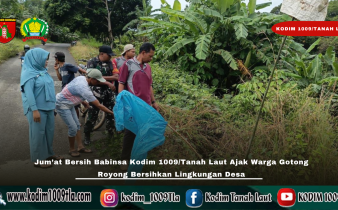 Jum’at Bersih Babinsa Kodim 1009/Tanah Laut Ajak Warga Gotong Royong Bersihkan Lingkungan Desa