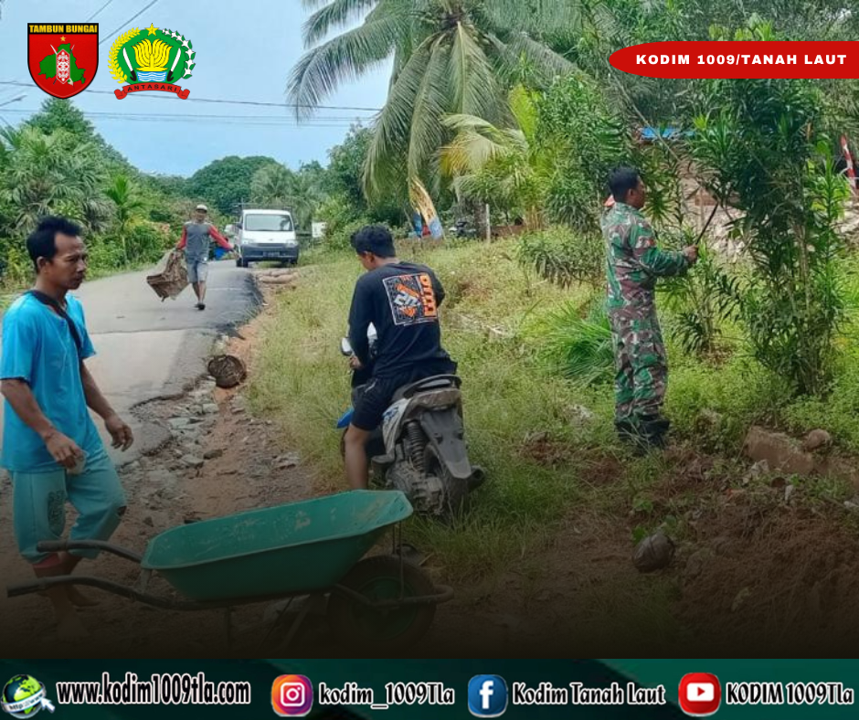 Tanah Laut – Sebagai upaya menjaga kebersihan dan meningkatkan kepedulian terhadap lingkungan, para Bintara Pembina Desa (Babinsa) jajaran Koramil 1009-06/Kintap Kodim 1009/Tanah Laut bersama warga kembali melaksanakan kegiatan gotong royong membersihkan lingkungan desa, Sabtu (08/11/2025).