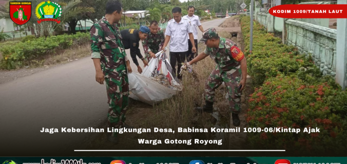 Tanah Laut – Sebagai upaya menjaga kebersihan dan meningkatkan kepedulian terhadap lingkungan, para Bintara Pembina Desa (Babinsa) jajaran Koramil 1009-06/Kintap Kodim 1009/Tanah Laut bersama warga kembali melaksanakan kegiatan gotong royong membersihkan lingkungan desa, Sabtu (08/11/2025).