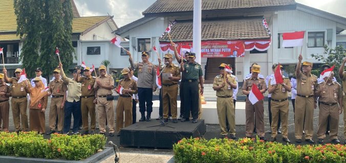 Kasdim 1009/Tanah Laut Menghadiri Pencanangan Gerakan Pembagian Bendera Merah Putih Tahun 2025