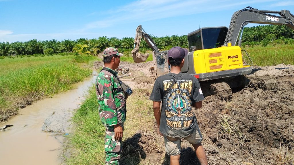 Dalam pelaksanaannya, di salah satu lokasi yakni di Desa Sungai Cuka, Kec. Kintap, Kabupaten Tanah Laut, Kopka Gatot Suharyanto Babinsa Koramil 1009-06/Kintap turun langsung ke lokasi untuk memantau dan mendampingi proses normalisasi aliran sungai oleh alat berat, Rabu (27/08/2025). Aliran sungai tersebut nantinya berfungsi sebagai sarana irigasi sekaligus mempermudah tata kelola air untuk mendukung pengolahan lahan rawa menjadi lahan pertanian produktif.