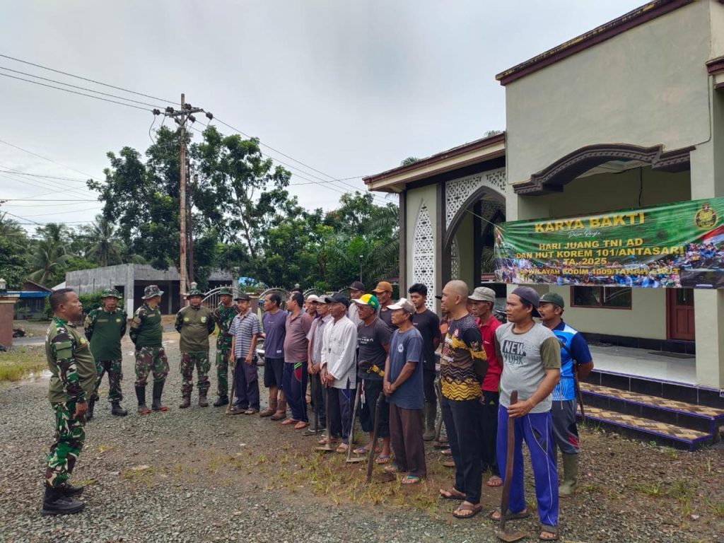 Tanah Laut – Komando Distrik Militer (Kodim) 1009/Tanah Laut kembali melaksanakan kegiatan Karya Bakti, dalam rangka memperingati Hari Juang TNI AD ke-80. Kali ini menyasar Mushola Miftahul Khair yang berada di RT. 03, RW. 01, Desa Alur, Kecamatan Jorong, Kabupaten Tanah Laut, Minggu (14/12/2025).