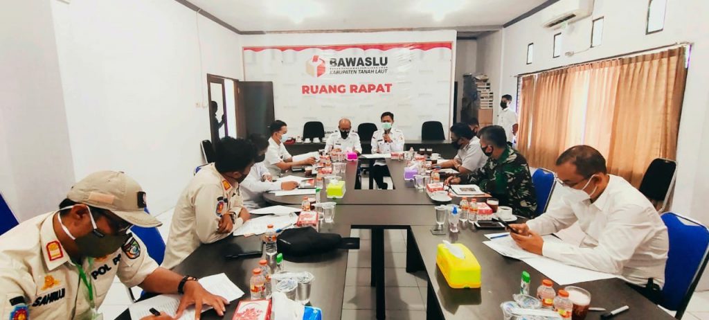 Pelaihari – Pasi Intel Kodim 1009/Pelaihari menghadiri Rakor pencegahan, pengawasan dan penindakan Protkes Covid 19 dalam menghadapi Pilgub, bertempat Kantor Sekretariat Bawaslu Jl. A. Syahriani Kel. Angsau, Kec. Pelaihari Kab. Tanah Laut, Selasa (21/10/20).