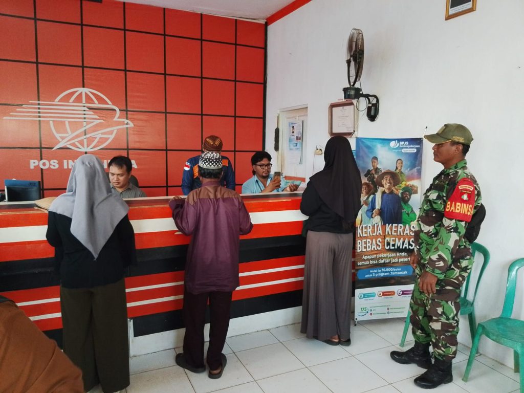 Dalam kegiatan tersebut, tampak salah satu Babinsa yakni Sertu Sufi’i membantu petugas Kantor Pos dalam mengarahkan warga penerima manfaat, mengatur alur antrean, hingga memeriksa kembali kecocokan data penerima agar bantuan tersalurkan tepat sasaran.
