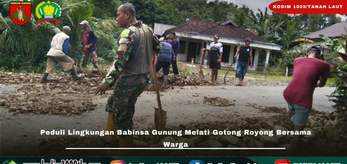 Tanah Laut – Melihat kondisi jalan desa yang berlubang dan berpotensi membahayakan pengguna jalan, Sertu Tulus Baskoro Babinsa Posramil Batu Ampar bersama warga setempat melaksanakan penimbunan jalan, bertempat di Desa Gunung Melati, Kecamatan Batu Ampar, Kabupaten Tanah Laut, Minggu (08/02/2026).
