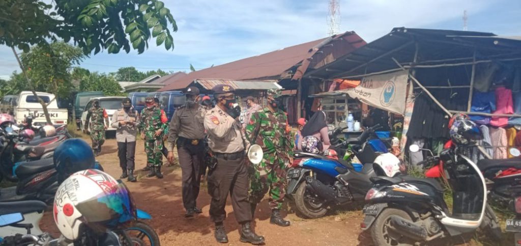 Tanah Laut – Tim mobile TNI, Polri, Satpol PP, BPBD, ASN dan relawan menegakkan Protkes di 6 wilayah di Kab. Tanah Laut, yaitu Kec. Jorong, Batu Ampar, Panyipatan, Bati-Bati, Takisung, Kurau dan Kintap, Senin (20/10/2020).