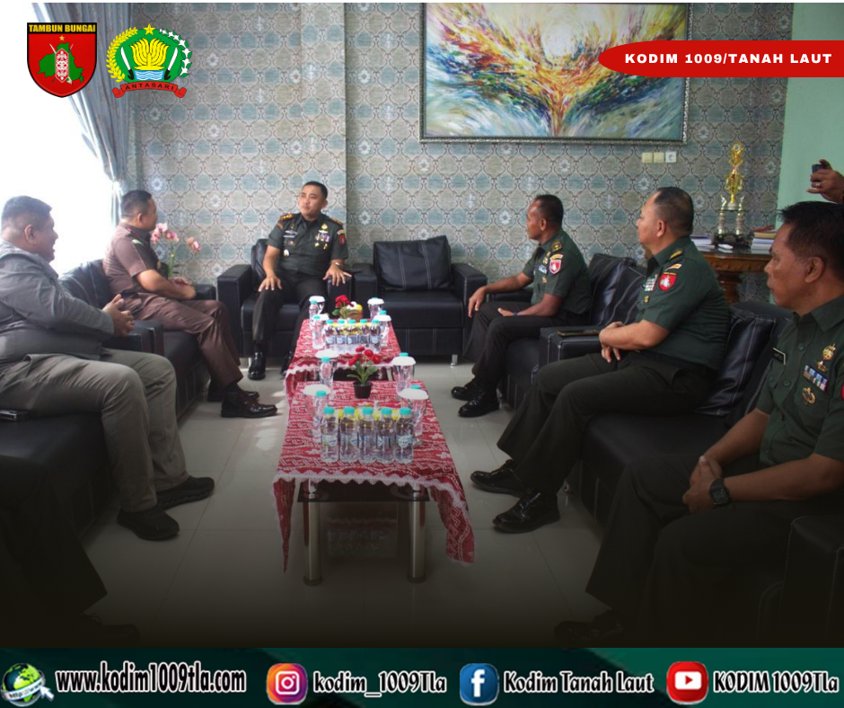 Pelaihari – Komandan Distrik Militer (Dandim) 1009/Tanah Laut Letkol Inf Adhy Irawan, S.I.P., M.H.I., didampingi oleh Kepala Staf Kodim (Kasdim) Mayor Inf Sarjito dan Perwira Staf, menerima kunjungan silaturahmi Kepala Kejaksaan Negeri (Kejari) Tanah Laut Lutfi Tri Cahyanto, S.H., M.H., di Makodim 1009/Tanah Laut, Jl. A. Yani, Kel. Angsau, Kec. Pelaihari, Kab.Tanah Laut, Selasa (04/11/2025).