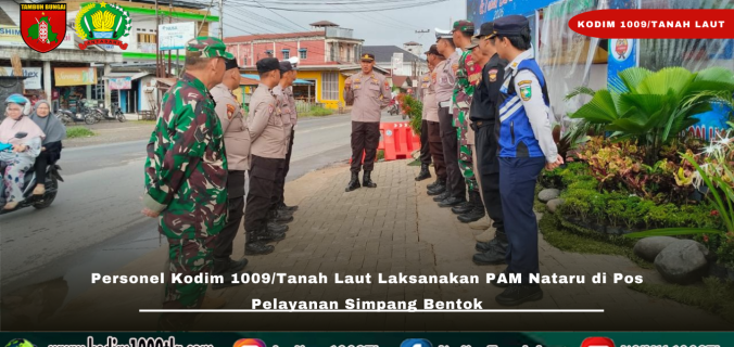 Tanah Laut – Dalam rangka mendukung kelancaran dan keamanan perayaan Natal 2025 serta Tahun Baru 2026 (Nataru), personel Kodim 1009/Tanah Laut melaksanakan Pengamanan (PAM) Natal dan Tahun Baru (Nataru) di Pos Pelayanan Simpang Bentok, Kecamatan Bati-Bati, Kabupaten Tanah Laut, Kamis (25/12/2025).