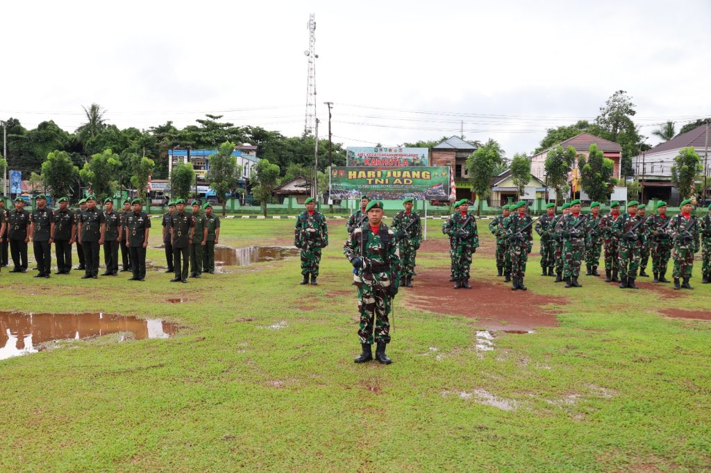 Pelaihari – Komandan Distrik Militer (Dandim) 1009/Tanah Laut, Letkol Inf Adhy Irawan, S.I.P., M.H.I., memimpin upacara peringatan Hari Juang TNI Angkatan Darat ke-80 yang digelar di lapangan Dalas Hangit Makodim 1009/Tanah Laut, Senin (15/12/2025).
