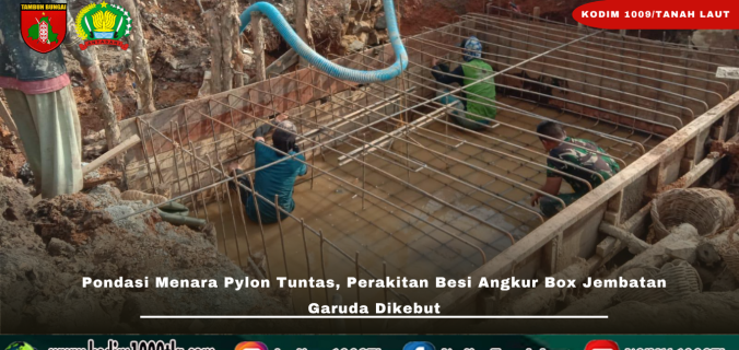 Tanah Laut – Pembangunan Jembatan Garuda di Desa Handil Labuan Amas, Kecamatan Bumi Makmur masih terus berlanjut. Setelah melalui berbagai tantangan di lapangan, pengerjaan pondasi menara pilon akhirnya berhasil diselesaikan oleh personel Kodim 1009/Tanah Laut. Keberhasilan ini menjadi tonggak penting dalam rangkaian pembangunan, sekaligus membuka jalan bagi tahapan konstruksi selanjutnya.