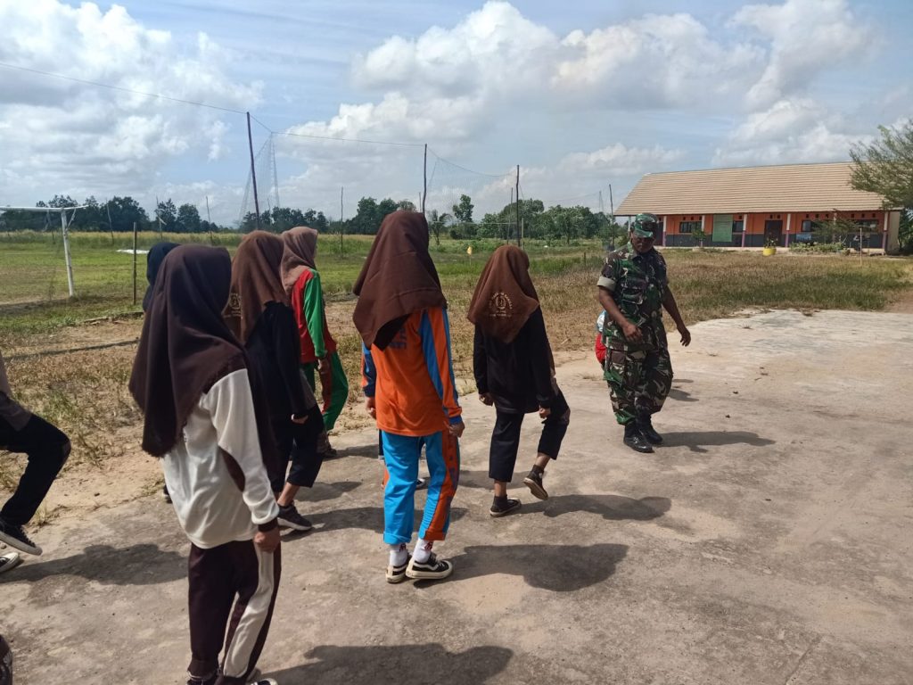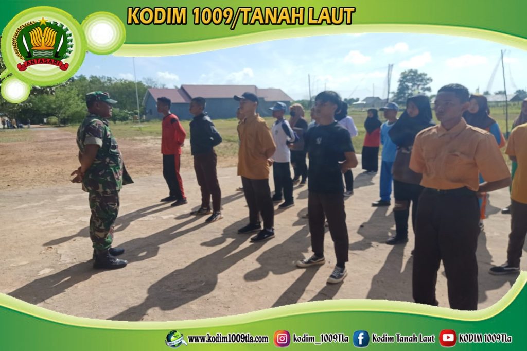 Tanah Laut – TNI Manunggal Membangun Desa (TMMD) Ke-117 Kodim 1009/Tanah Laut di Desa Telaga Langsat, tak hanya berkonsentrasi pada sasaran fisik saja tetapi juga sasaran non fisik. Ditengah kesibukan menyelesaikan pembangunan, salah satu personil satgas TMMD menyempatkan diri untuk melaksanakan seleksi Pasukan Pengibaran Bendera (Paskibra) di lapangan SMAN 1 Takisung, Kec. Takisung, Kab. Tanah Laut, Kamis (27/07/2023).