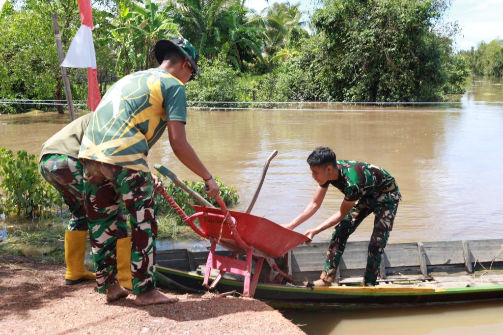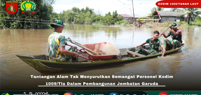 Tanah Laut – Di tengah tantangan medan yang cukup berat dan penuh keterbatasan, personel Kodim 1009/Tanah Laut tetap menunjukkan semangat juang dan dedikasi tinggi dalam mendukung percepatan pembangunan Jembatan Garuda di Desa Handil Labuan Amas, Kecamatan Bumi Makmur, Kabupaten Tanah Laut. Lokasi pembangunan yang berada di wilayah dengan akses darat terbatas serta dikelilingi aliran sungai dan rawa, menuntut adanya upaya ekstra dalam proses distribusi material maupun peralatan kerja.