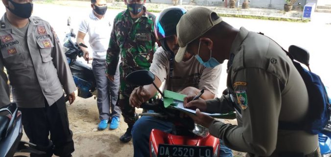 Tanah Laut – Setiap harinya penerapan Protkes digencarkan tim mobile TNI, Polri, Satpol PP, BPBD, Damkar dan relawan, Jum’at (30/10/2020).
