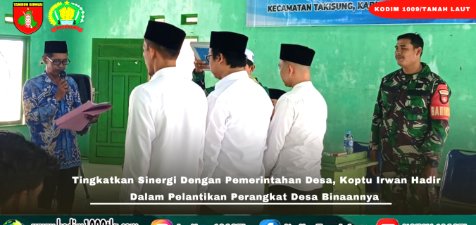 Tanah Laut – Babinsa Koramil 1009-04/Takisung Kodim 1009/Tanah Laut Koptu Irwan menunjukkan wujud komitmen dalam mendukung pemerintahan desa dengan menghadiri kegiatan pelantikan perangkat desa di wilayah Kecamatan Takisung, Kabupaten Tanah Laut. Kehadirannya tersebut menjadi bagian dari peran aktif TNI AD dalam pembinaan teritorial sekaligus memperkuat sinergi dengan aparat pemerintahan di tingkat desa.